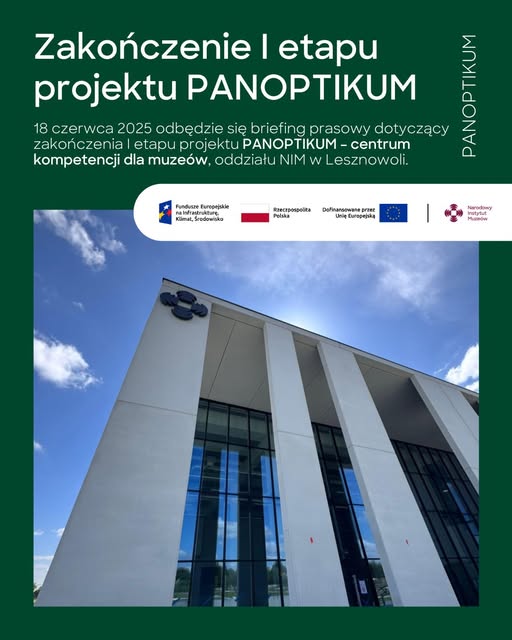 18 czerwca 2025 r. o godz. 13.00 odbędzie się briefing prasowy dotyczący zakończenia I etapu inwestycji - zakonczenie prac budowlanych PANOPTIKUM – centrum kompetencji dla muzeów, oddziału Narodowego Instytutu Muzeów w Lesznowoli.
